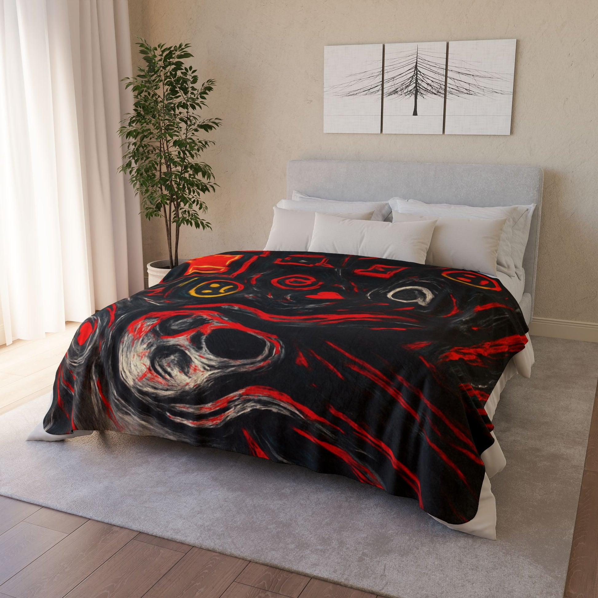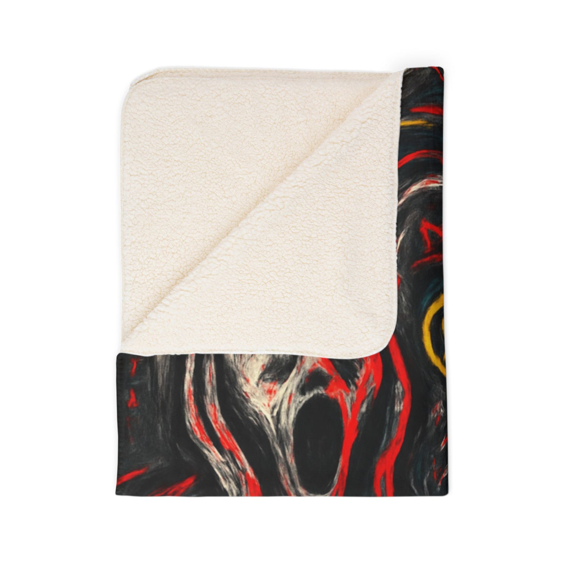 Channel raw expression with this striking Fleece Sherpa Blanket inspired by Edvard Munch’s iconic The Scream—reimagined for today’s digital age. The design features a bold, abstract figure in mid-scream surrounded by modern symbols of everyday pressure: the ‘like’ thumbs-up, sad smiley, and digital chaos of our hyper-connected world. Rendered in a powerful palette of black, red, silver, and sharp accents, the artwork captures the tension of modern life while making a fearless style statement. Printed on premium, soft fabric, this t-shirt blends art, commentary, and fashion—perfect for those who want to stand out and say something real.