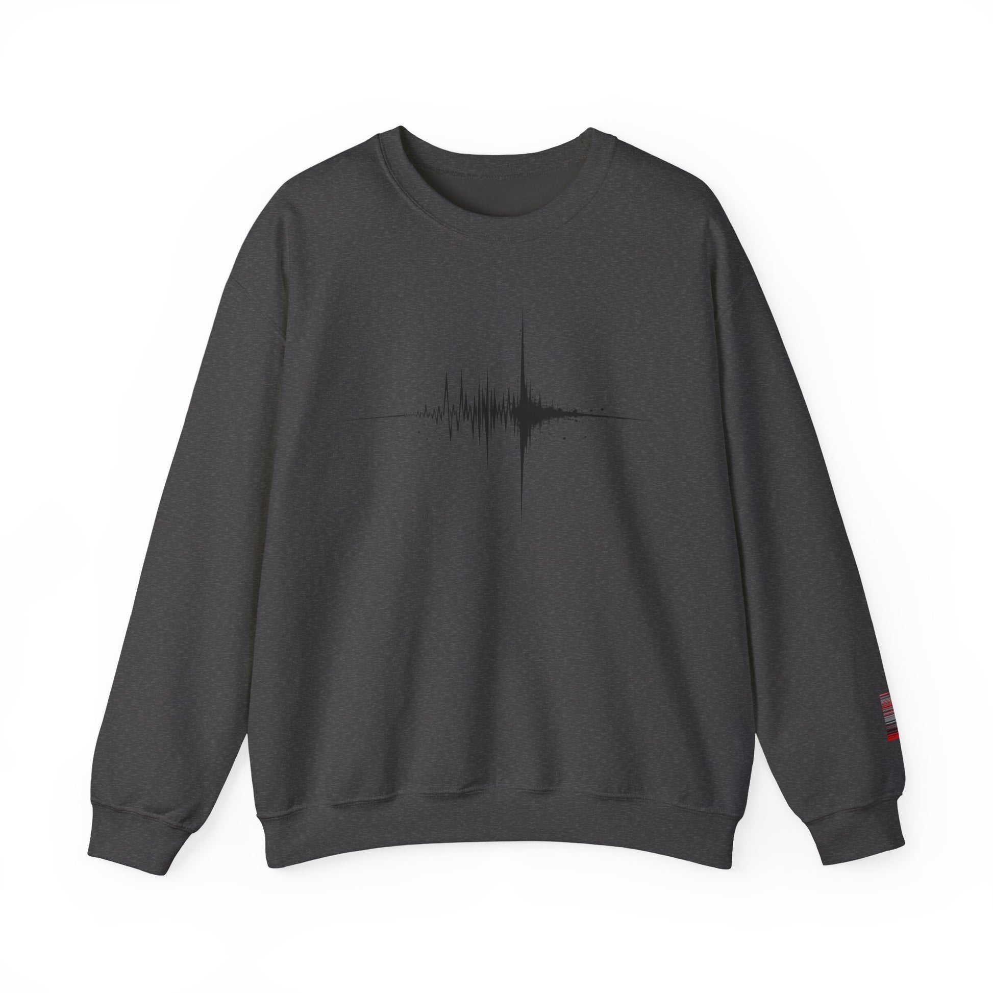 Quiet, wearable art that feels like a private soundtrack. This crewneck carries a subtle soundwave across the chest—sharp, minimal, and a little haunting—so every time you pull it on you’ll remember a moment, a lyric, or a pulse that mattered. The soft 50/50 cotton-poly blend sits warm against the skin while the classic cut keeps the silhouette uncomplicated. Clean details—tubular knit body, ribbed collar, reinforced stitching—make this a go-to layer for studio nights, late walks, or low-key meetups. Small brand touches at the back neck and wrist print keep the piece feeling curated, not loud. It wears like something you’ve had for years from the first day.